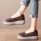 春装新款 厚底增高坡跟真皮羊皮豆豆鞋松糕鞋女鞋单鞋 柔软舒适