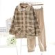 春装新款日系摇粒绒女装格子家居服休闲套装睡衣套装