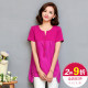 夏装中年大码妈妈装胖mm女装t恤短袖中长款韩版宽松v领上衣纯棉
