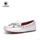 AUMU秋季新款真皮碎花豆豆鞋女款平底鞋甜美平跟女鞋时尚单鞋1658