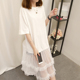 中长款t恤女短袖2017夏季新款韩版宽松蕾丝短袖打底衫体恤裙夏潮