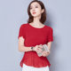 夏季女装短袖圆领压皱雪纺衫韩版宽松甜美短款荷叶袖娃娃衫上衣女