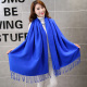 简约百搭纯色流苏围巾女秋冬季长款仿羊绒披肩两用厚实保暖宝蓝色