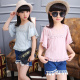 17年夏装女童套装中大童新款韩版蕾丝上衣+牛仔花边时尚流苏套装