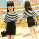 2017年夏季装女童连衣裙中大女童新款夏季韩版黑白条纹包臀裙夏装