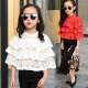 童装女童2017年多层蕾丝圆领上衣加时尚流苏九分喇叭裤两件套套装