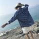 韩版新款春季衬衫男士条纹落肩宽松衬衣潮青年百搭衬衫外套男帅气