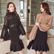实拍2017春夏新款时尚套装灯笼袖长袖雪纺衫包臀鱼尾裙两件套3621