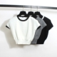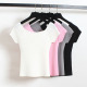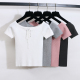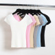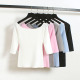 韩版性感高腰露脐短款针织T恤简约百搭修身短袖针织衫上衣女 春夏
