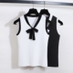 夏季韩版显瘦拼色系带修身蝴蝶结冰丝无袖针织衫背心打底上衣女
