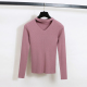 韩版性感镂空V领挂脖长袖针织衫女套头修身显瘦纯色打底衫上衣 潮