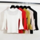 韩国修身纯色露肩一字领针织衫五分中袖短款打底衫上衣 女