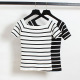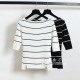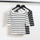 修身显瘦一字领针织衫 黑白条纹短款t恤 中袖薄款打底衫上衣 女