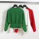 秋冬新款纯色甜美荷叶边下摆针织衫韩版短款套头宽松蝙蝠袖毛衣女