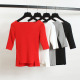 韩国纯色修身显瘦一字领短款针织衫打底衫五分中袖针织T恤上衣女