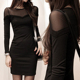2016秋装新款裙子长袖贴身中长款打底衫女装秋天性感网纱连衣裙潮