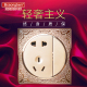香槟金欧式86型墙壁酒店家用电源开关插座面板 5孔 圆形五孔插座