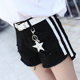 哥伦奴比夏时尚百搭黑白织带破洞运动阔腿牛仔短裤女装街头潮流