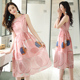 2017春夏季女装韩版雪纺裙印花连衣裙a字裙圆领无袖修身背心裙子