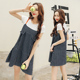 宽松吊带条纹中长款两件套连衣裙女牛仔A字裙