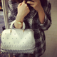 骆驼和羊手工女潮包2017春夏新款欧美铆钉单肩斜挎包手提波士顿包