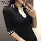 浅艺世2017韩版夏季深V撞色polo领气质修身显瘦女短袖连衣裙