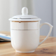 洁升金边办公会议茶杯 陶瓷带盖水杯 瓷杯子 家用开会杯 可定制