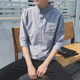 森马夏季短袖衬衫男士七分袖衬衣韩版印花修身7分袖青年纯色中袖