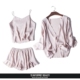 限时包邮 夏季女七分袖睡衣吊带短裤仿真丝时尚家居服套装三件套