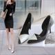 春季白黑色高跟鞋细跟优雅职业中跟尖头女鞋33码小码侧空单鞋百搭