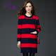 女装圆领打底衫秋冬女长袖黑白条纹口袋春秋天外套中长款针织毛衣