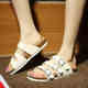 夏季新款韩版罗马露趾两穿凉鞋女一字平底大码软木拖鞋情侣沙滩鞋