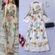 2017春季新款女装欧美走秀款重工绣花烫钻圆领长袖长裙气质连衣裙