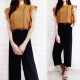 2017夏季新款女装无袖荷叶边上衣时尚气质雪纺套装阔腿裤两件套女