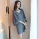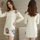 2017春装裙子 韩版针织连衣裙 宽松刺绣长袖毛衣女 打底衫中长款