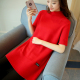 秋冬新款女装韩版修身中长款套头针织衫腰带连衣裙打底毛衣女长袖