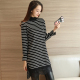 2015秋冬韩版新款中长款半高领女士毛衣裙条纹下摆开叉连衣裙潮