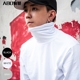 潮男高领修身打底衫高街素色长袖t恤 潮牌套手套头衫秋季体恤男潮