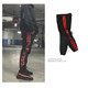 欧美高街潮牌黑红条纹字母运动长裤 校裤风 复古KANYE椰子同款