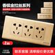 118型墙壁电源开关插座面板 香槟金拉丝三位十五孔插座
