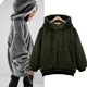 春秋新款2017大码加绒加厚中长款外套街头宽松抓绒卫衣女长款
