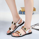 2017夏新款平底时尚亮皮凉鞋女搭扣鱼嘴漏趾女鞋韩版学生鞋沙滩鞋