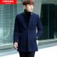 男士毛呢外套风衣春秋男立领中长款修身青年韩版拼接羊毛呢子大衣