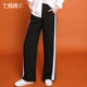 七格格2017新款一条杠运动裤女 宽松校服裤直筒黑白撞色休闲长裤