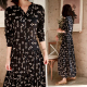 韩国代购新款女装中长款碎花连衣裙宽松大码显瘦雪纺打底衬衫裙女