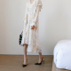 碎花雪纺连衣裙长袖春印花复古文艺修身韩版长裙夏韩国东大门代购