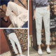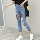 春秋韩版百搭破洞白色九分牛仔裤女 学生哈伦裤 修身显瘦小脚裤潮