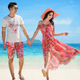 沙滩情侣装夏装2017新款潮女裙子海边度假套装韩版蜜月连衣裙显瘦
