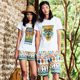 2017新款沙滩情侣装夏装民族风短袖t恤衫套装潮男女韩版半袖宽松