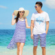 海军风沙滩情侣装夏装蜜月度假海边套装潮男t恤上衣女条纹连衣裙